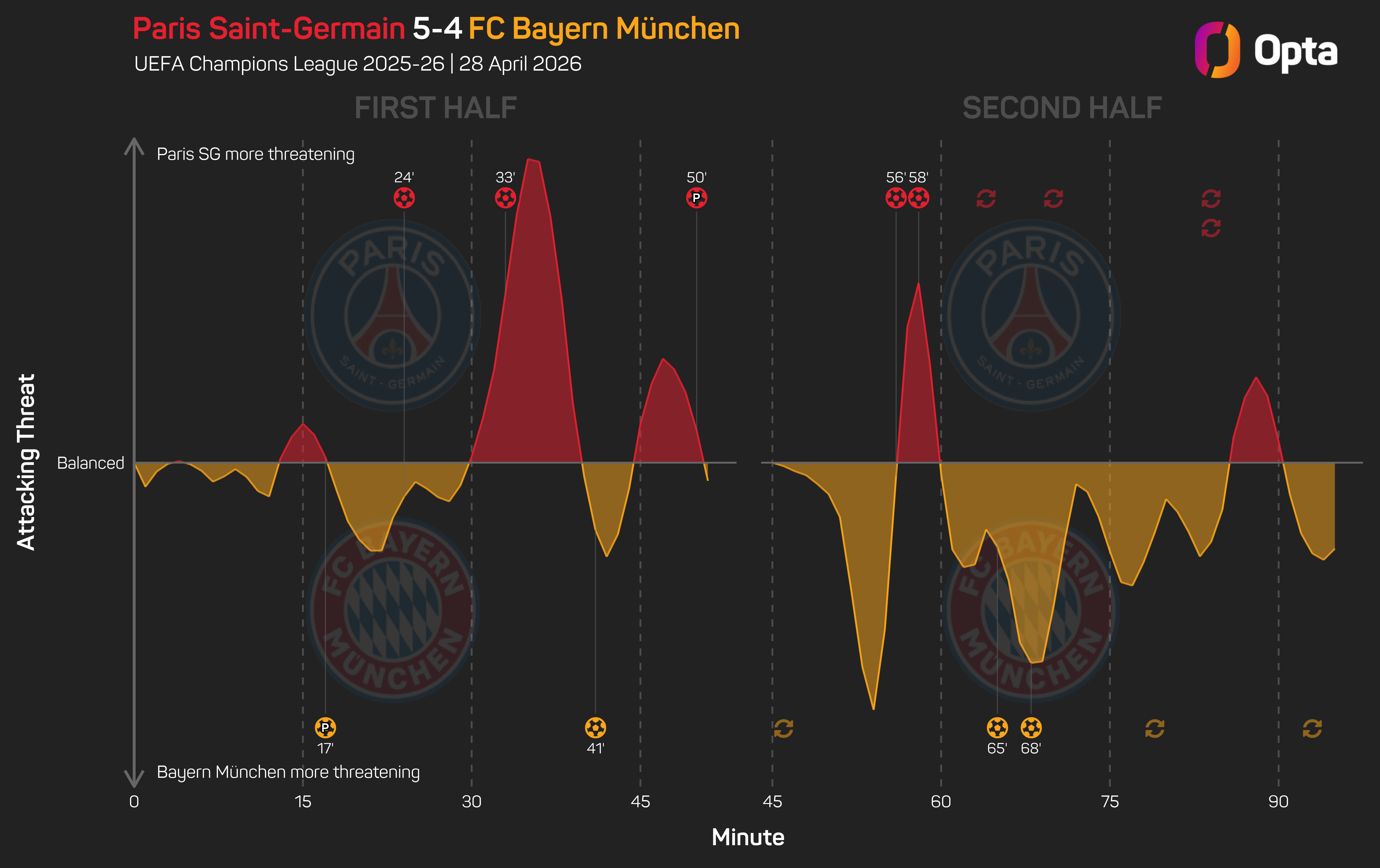 Tuesday's game was the joint highest-scoring semi-final match in European Cup or Champions League history, along with Eintracht Frankfurt's 6-3 win over Rangers in 1959-60.