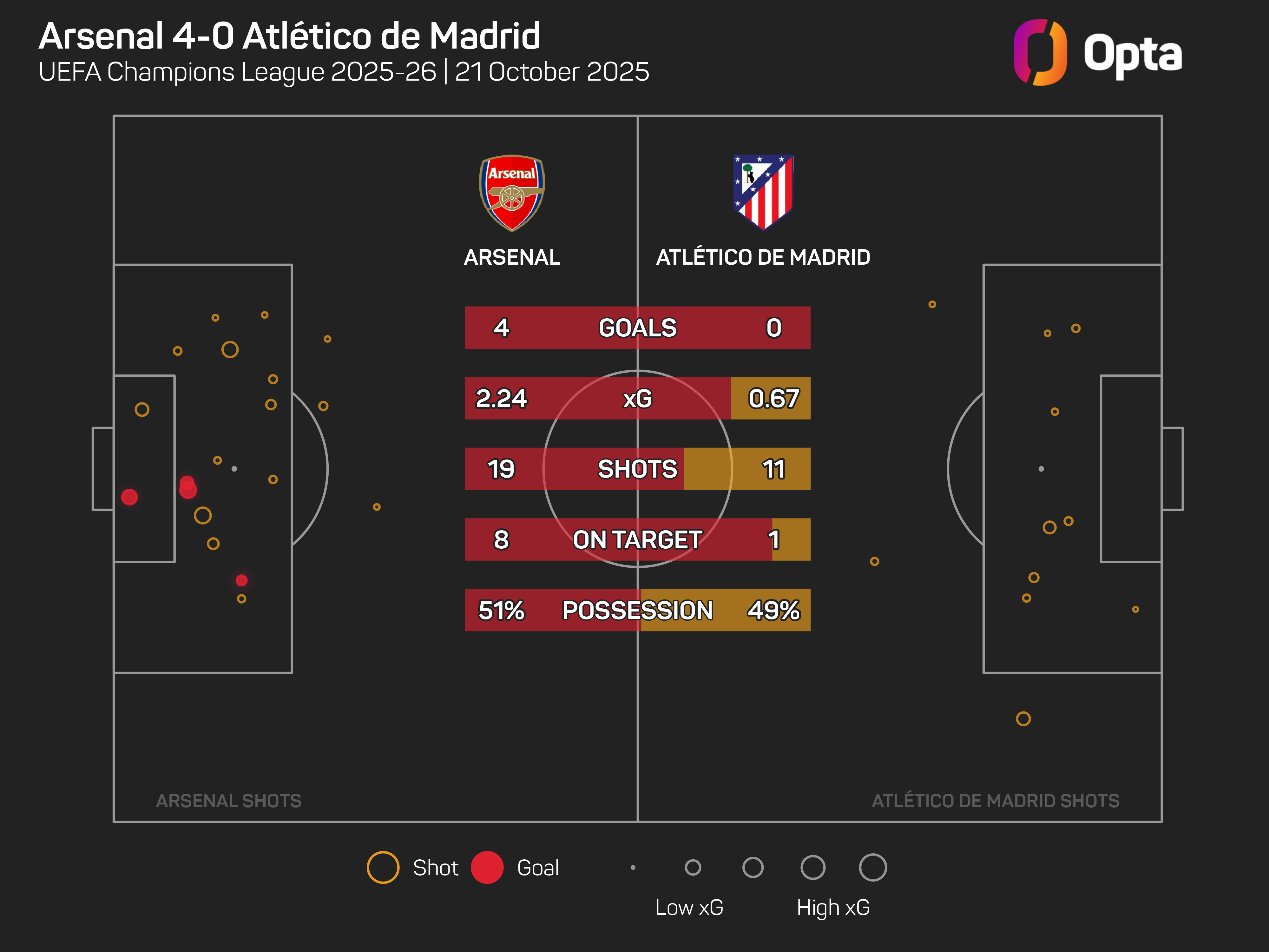 Viktor Gyokeres scored his first Champions League goals for Arsenal, sealing a 4-0 thrashing of Atletico Madrid at the Emirates.