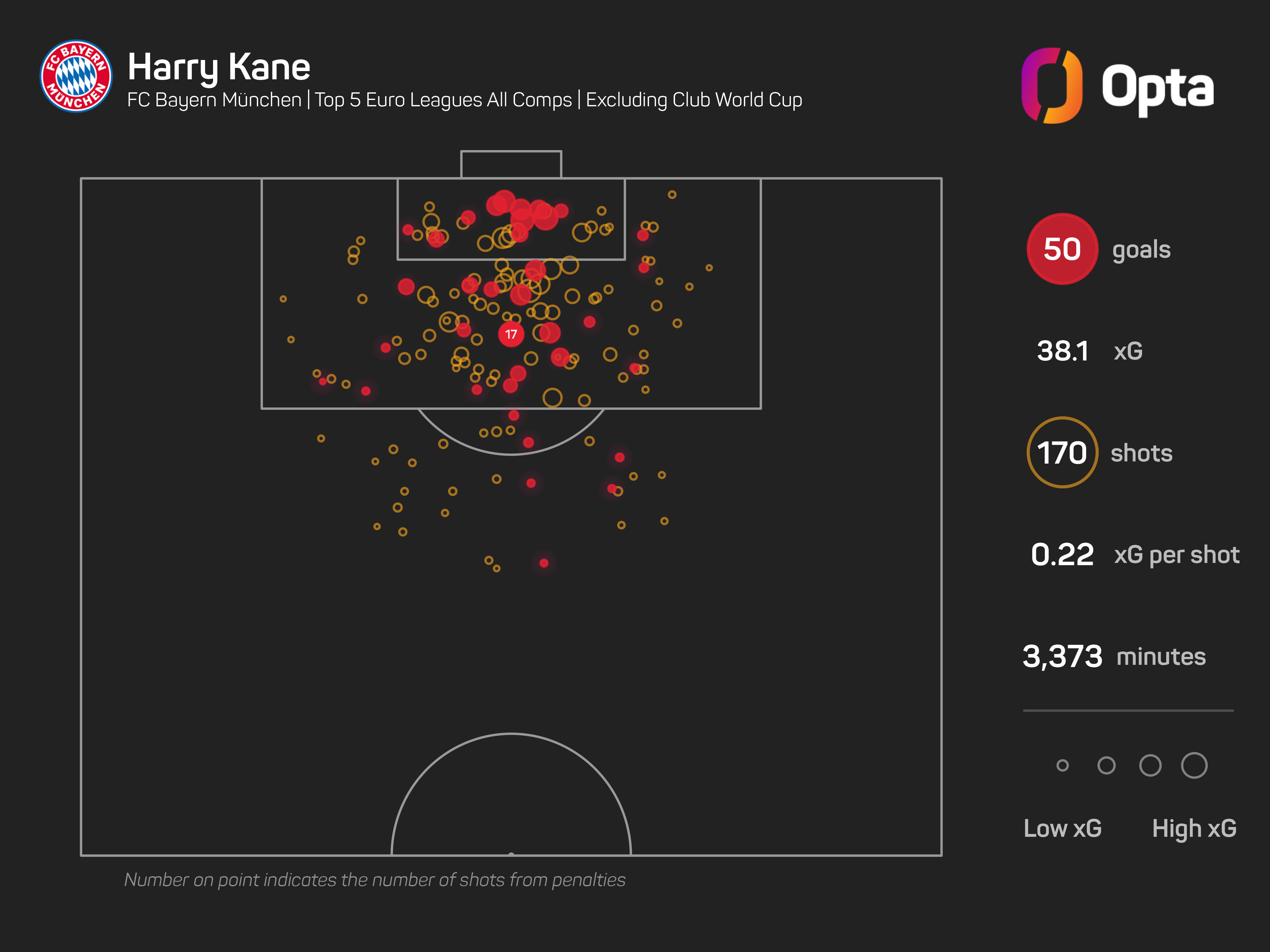 The England captain scored Bayern's second goal of the game, taking him to 50 in all competitions this season. He is the first player net 50 times in a single campaign for a team in Europe's top five leagues since Erling Haaland for Manchester City in 2022-23 (52).