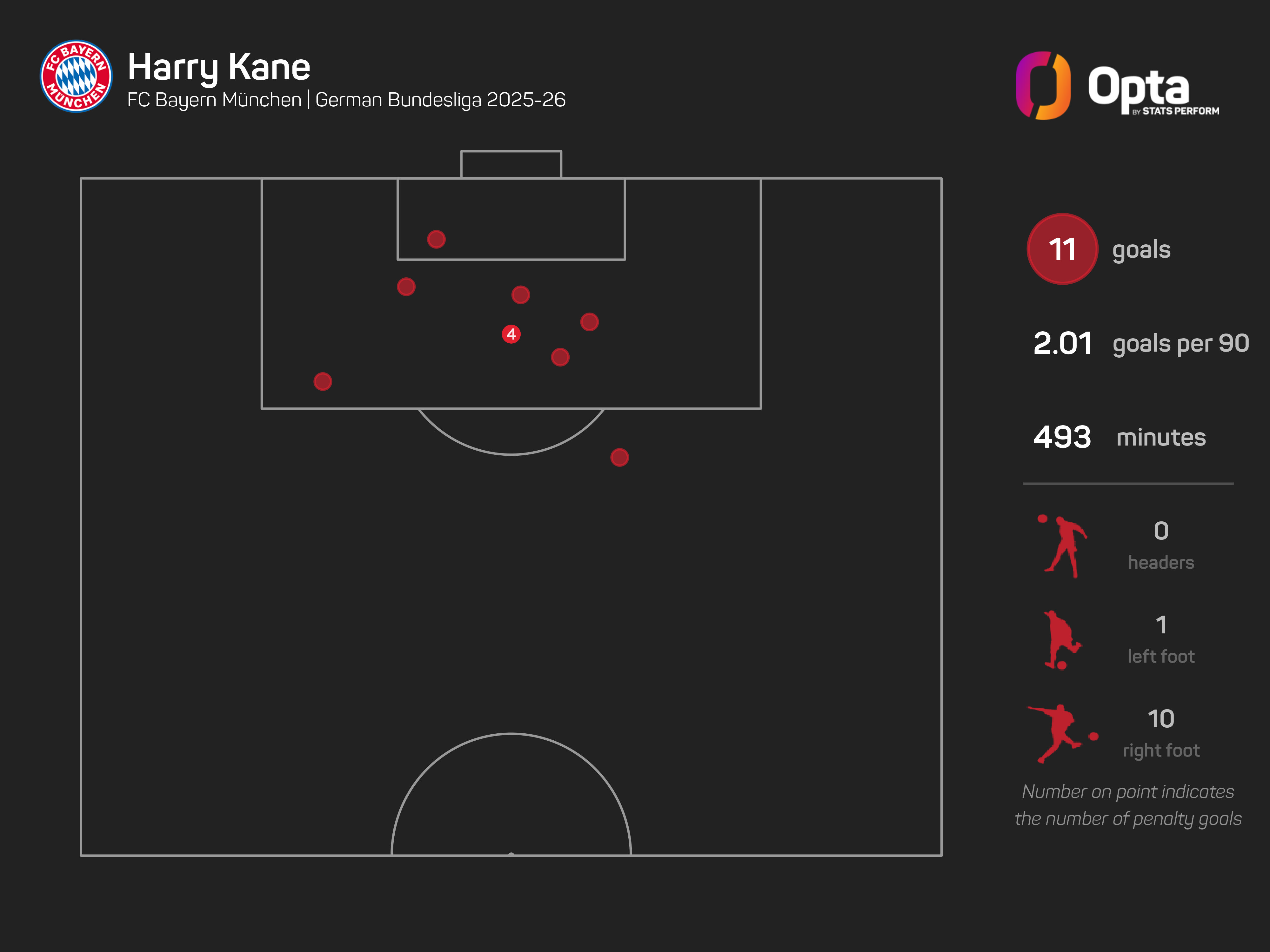 Kane has been in sensational form for Bayern this season, netting 11 goals in just six Bundesliga outings for Vincent Kompany's side, who are at the top of the table.