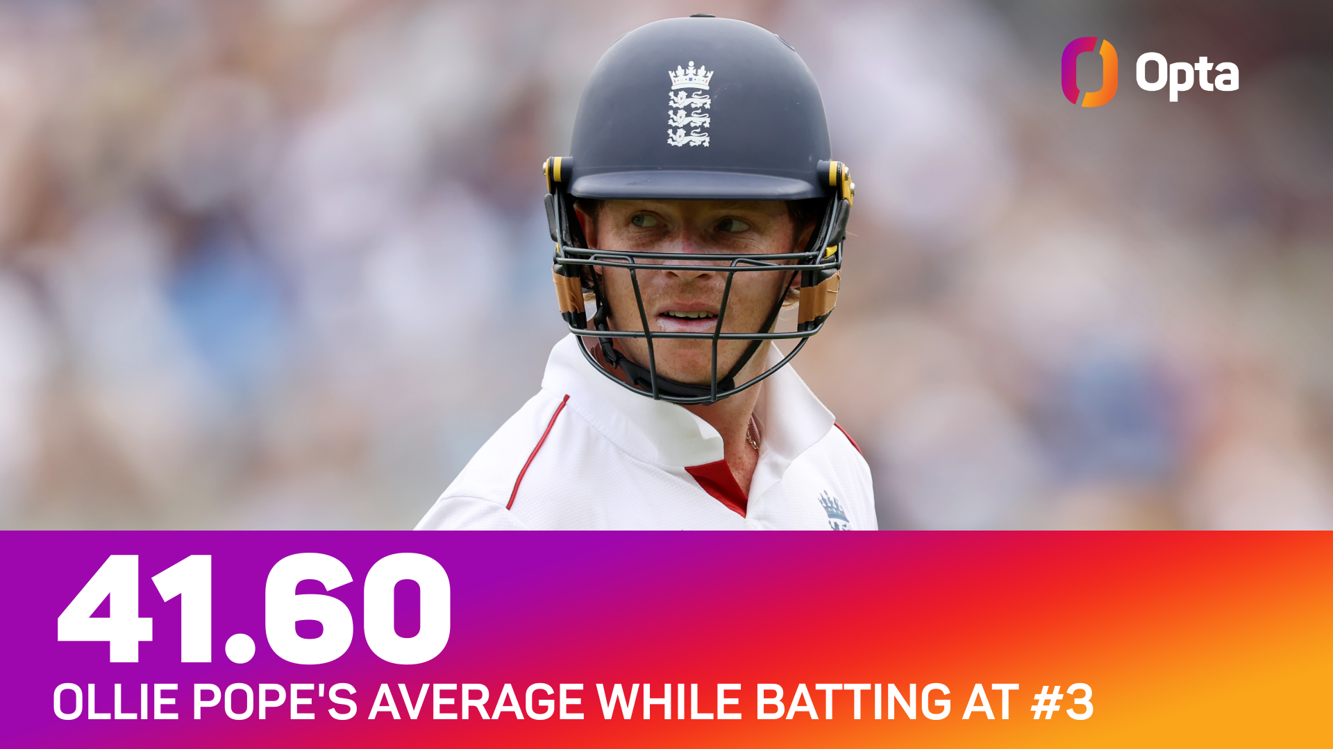 Pope averages 41.60 while batting at three for England in Tests. His overall average in the longest format is 35.36.
